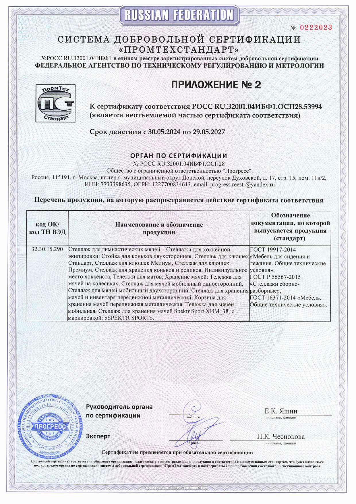 Сертификат соответствия инвентарь 2